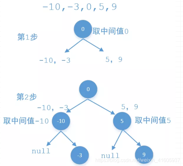 给定有序数组:[-10,-3,0,5,9],一个可能的答案是:[ 0,-3,9,-10,null,5],它可以表示下面这个高度平衡二叉搜索树: