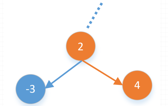 3,保留当前节点和右子节点。比如下面结点2的左子节点是负数,我们直接舍弃左子节点,但右子节点不是负数,我们可以保留右子节点。